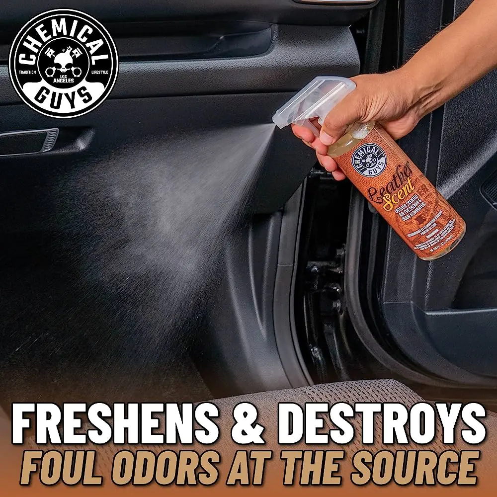 Chemical Guys Leather Scent is more than just an air freshener: it’s an odor eliminator. Leather Scent freshens any space with the distinct musk of freshly-tanned fine leather. Fine leather smells fresh, clean, rich, and aromatic. Besides the look and feel, one of the most loved parts of leather seats, upholstery, apparel, and accessories is its refined and luxurious smell.