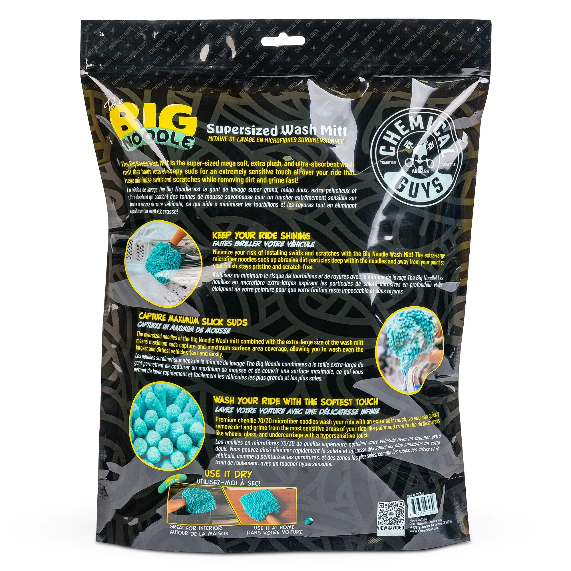- Among our wash mitts, the Big Noodle has an extra large surface area and large chenille ‘noodles’ to speed up washing on any size of vehicle.