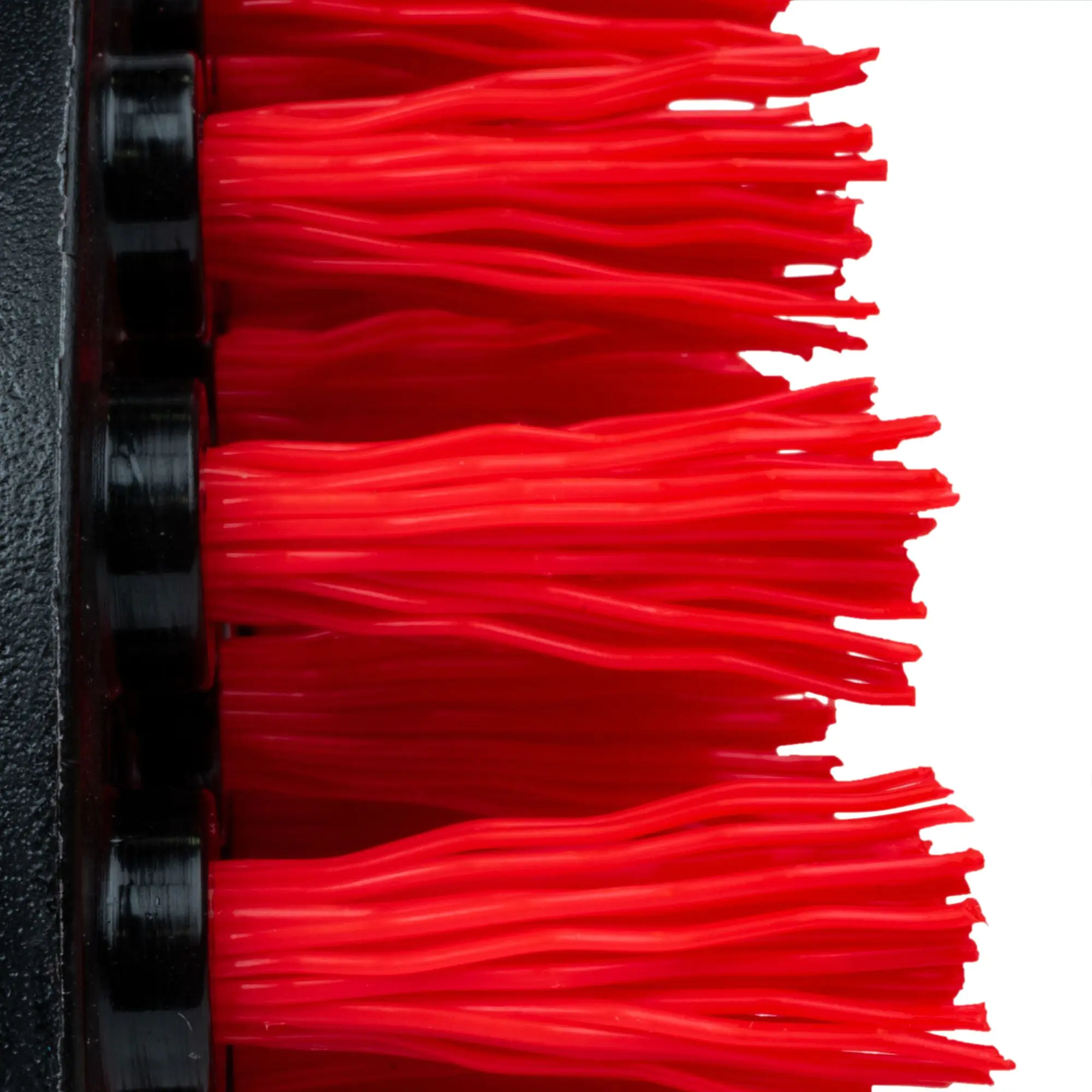 - Heavy duty red bristles remove stuck-on dirt and grime fast