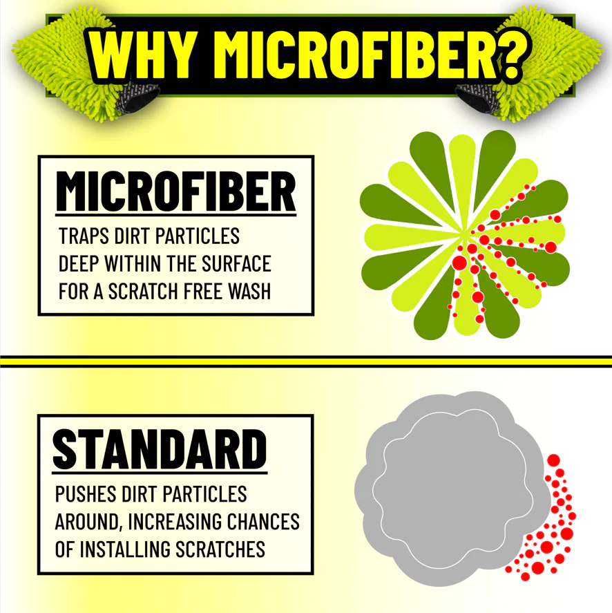 The Chenille Car Wash Mitt is made of extra plush microfiber that holds tons of soapy water to drench your car in thick foaming suds, for a gentle wash that minimizes micro-scratches and swirls.