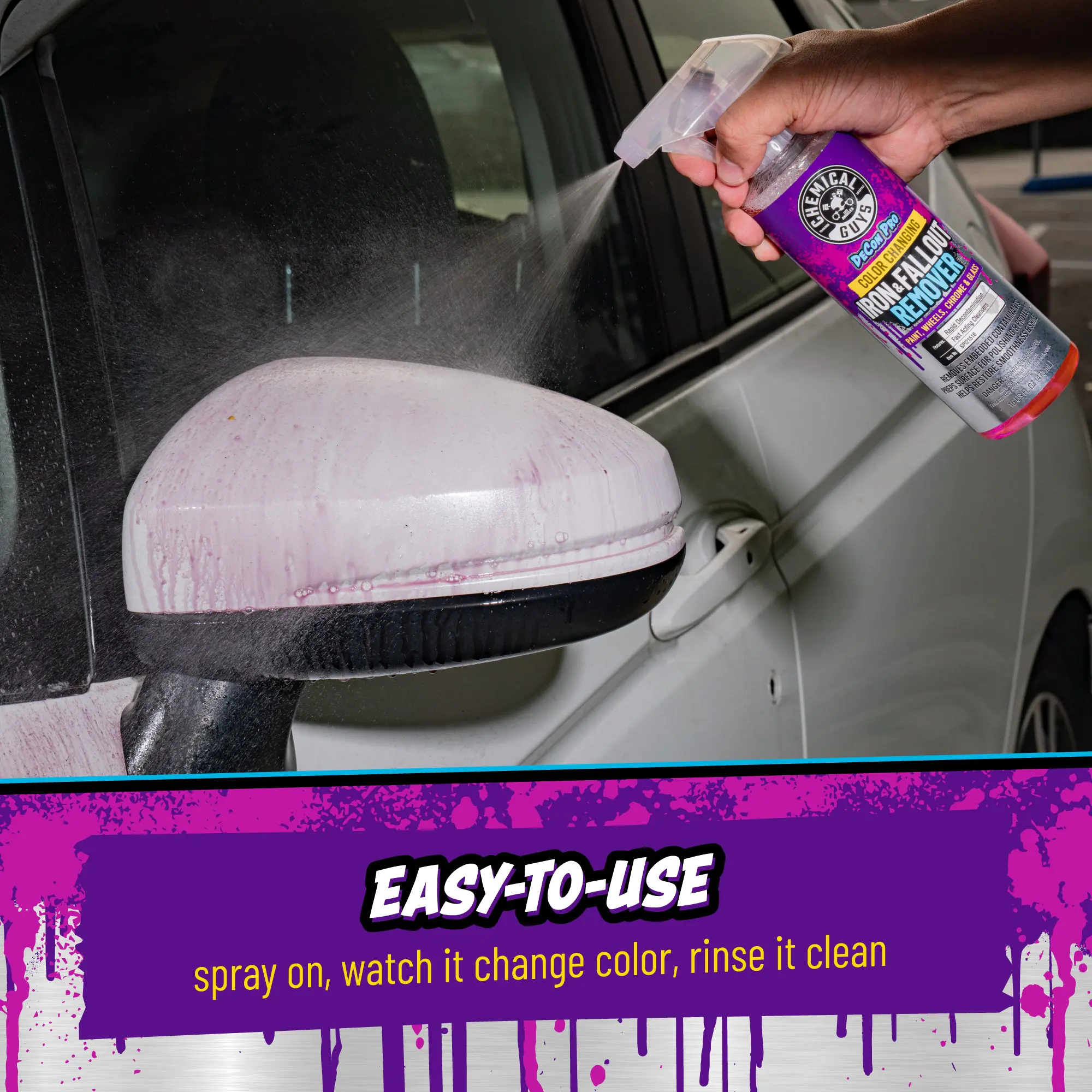 Decon Pro is an advanced contamination cleaner that removes embedded iron deposits & industrial fallout from paintwork, chrome, glass, and wheels. Simply spray on, watch it turn purple as it dissolves contaminants and rinse clean.