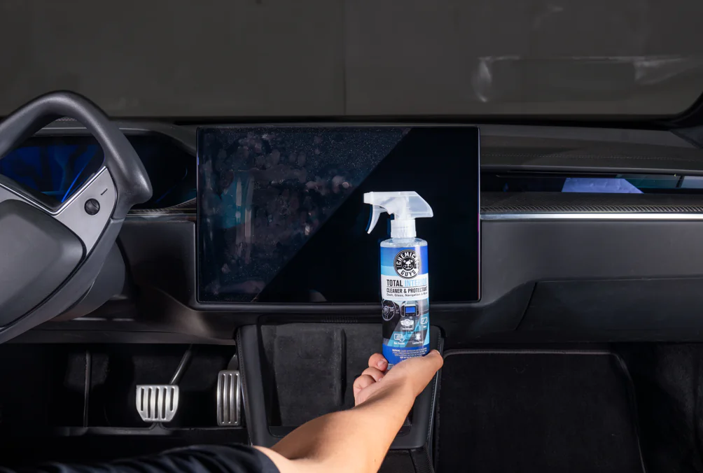Total Interior Cleaner is safe for leather, vinyl, plastic, carpet, cloth, glass, & screens. -