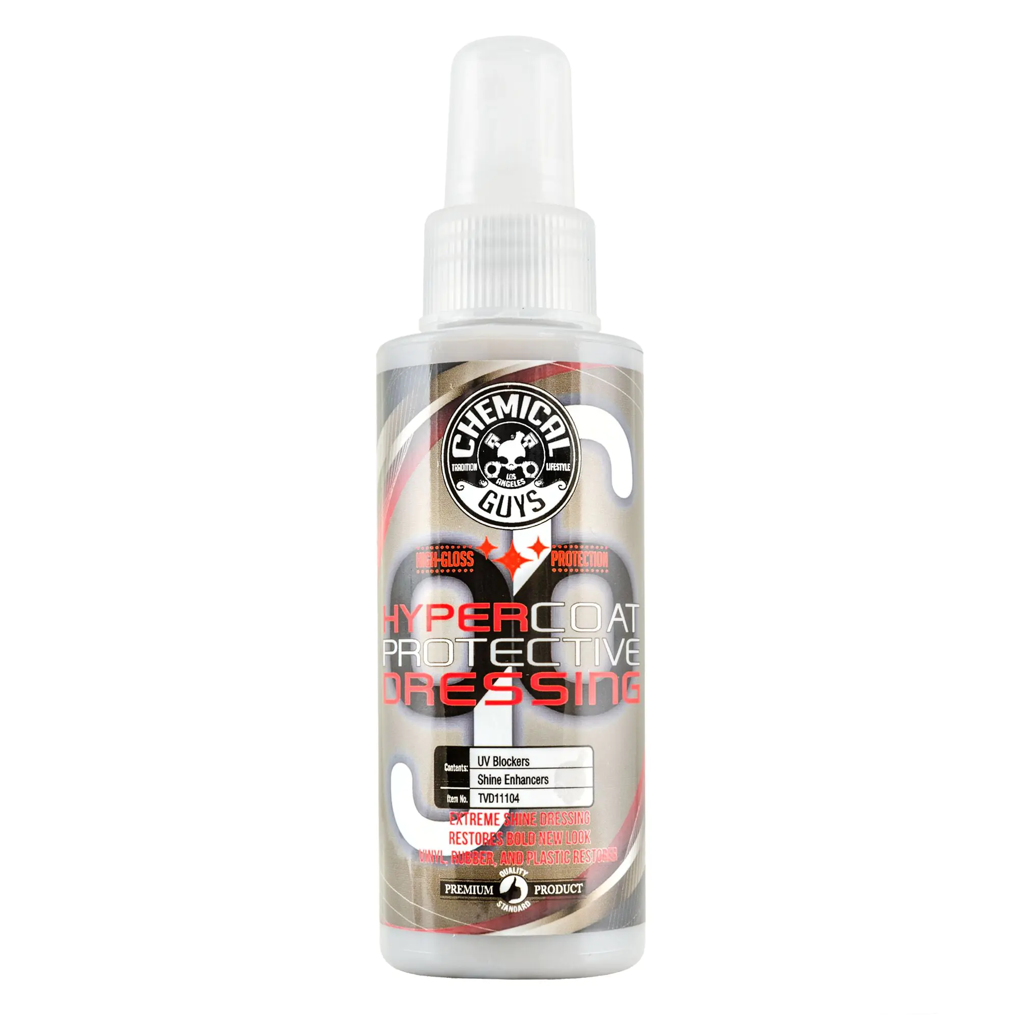 G6 is blended with synthetic polymers to create a liquid trim sealant. The water-based HyperCoat formula nourishes dried-out and sun-faded trim parts to rejuvenate a deep-black wet-shine appearance. Usable on interior or exterior parts, the sprayable formula spreads out evenly, reducing the need to reapply dressing over uneven areas.