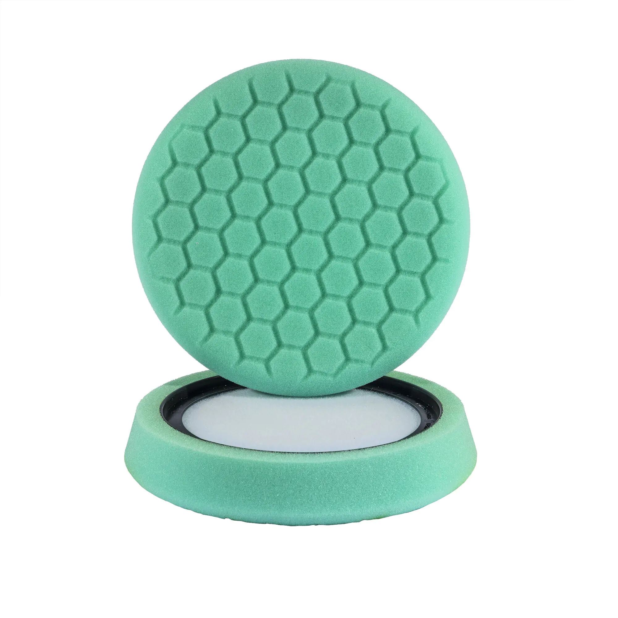 Hex-Logic buffing and polishing pads are designed, engineered, and manufactured in the United States. Every pad uses a hook-and-loop interface backing pad to attach to any machine polisher backing plate that uses the hook-and-loop material. This unique breathable backing material helps wick heat away through the attachment side and advanced vented backing plates.