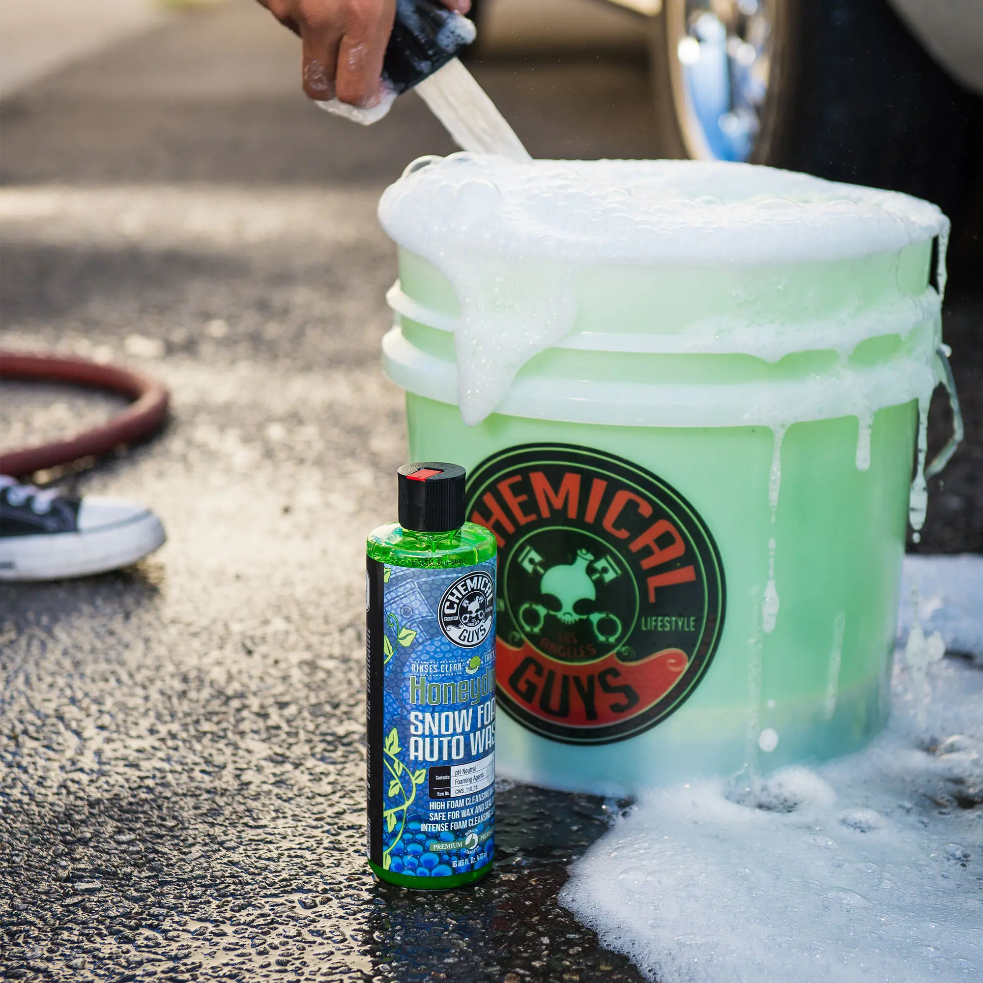 and watch as powerful hypersurfactants cut through dirt and grime, lift them from sensitive automotive paintwork with billions of scrubbing bubbles, then safely guide them off the paint. Plus, Honeydew Snow Foam rinses clean with no residue and contains water softeners to help reduce hard water spots.