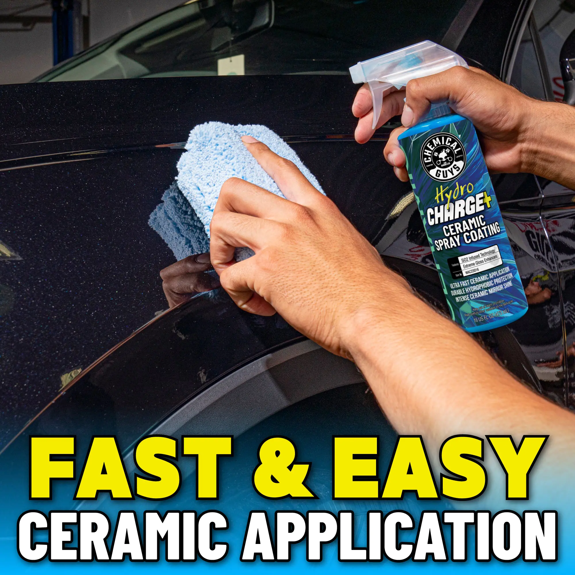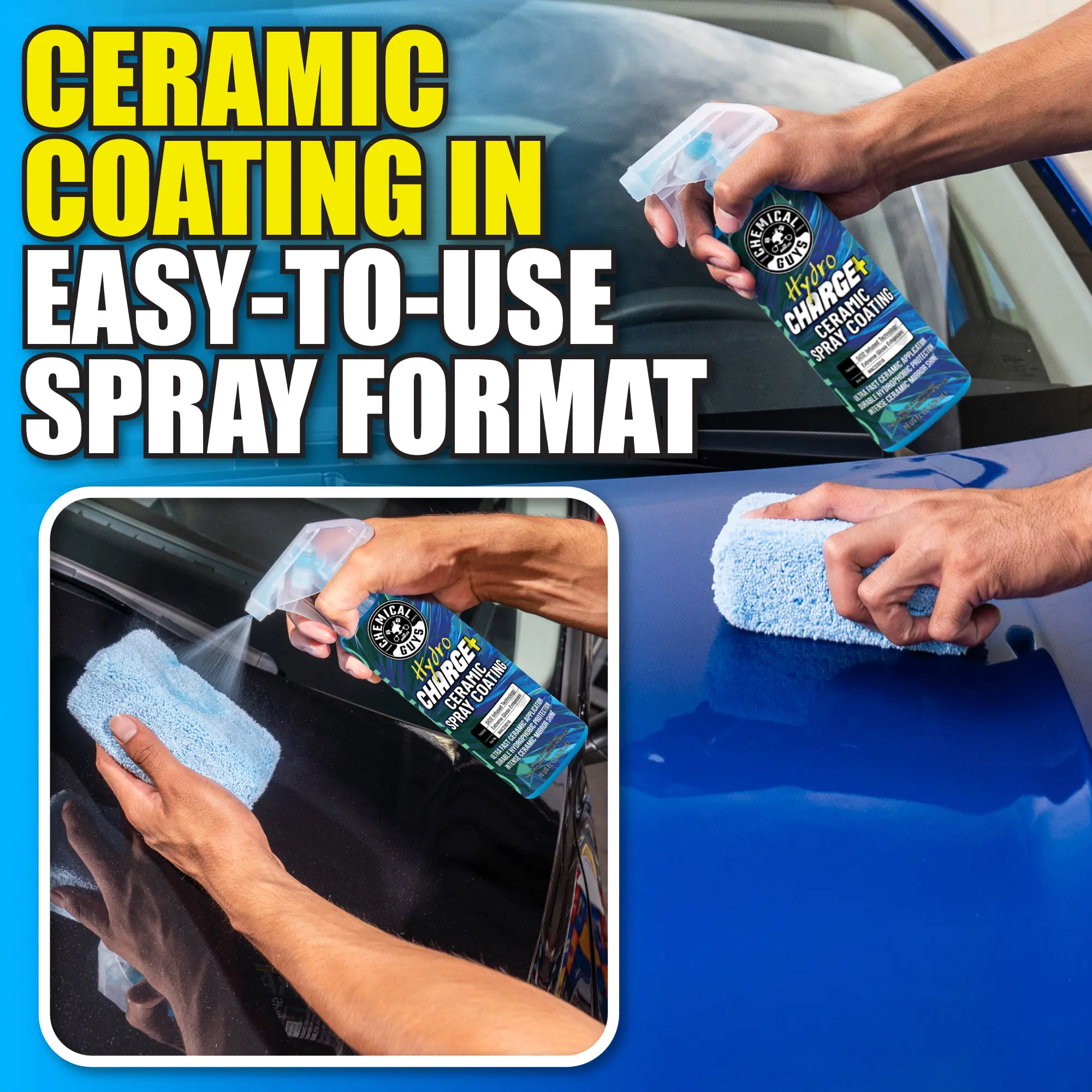 HydroCharge+ is the easy-to-use SiO2 ceramic spray coating that delivers a brilliant high-gloss candy shine, extreme hydrophobic properties, and the durable protection of a ceramic coating with the ease of use and speed of a spray.
