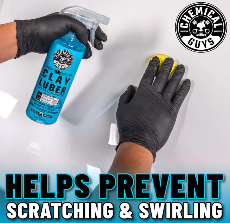 To help your clay bar glide across the surface without getting stuck or marring the glossy shine, you need a lubricant. This is where Clay Luber comes into play: simply mist Clay Luber over the surface to lay down a coat of slick lubrication between the clay bar and your paintwork. Now as the clay bar grabs onto the above-surface contamination stuck on top of the paint, it won’t get stuck to or mar the painted finish.