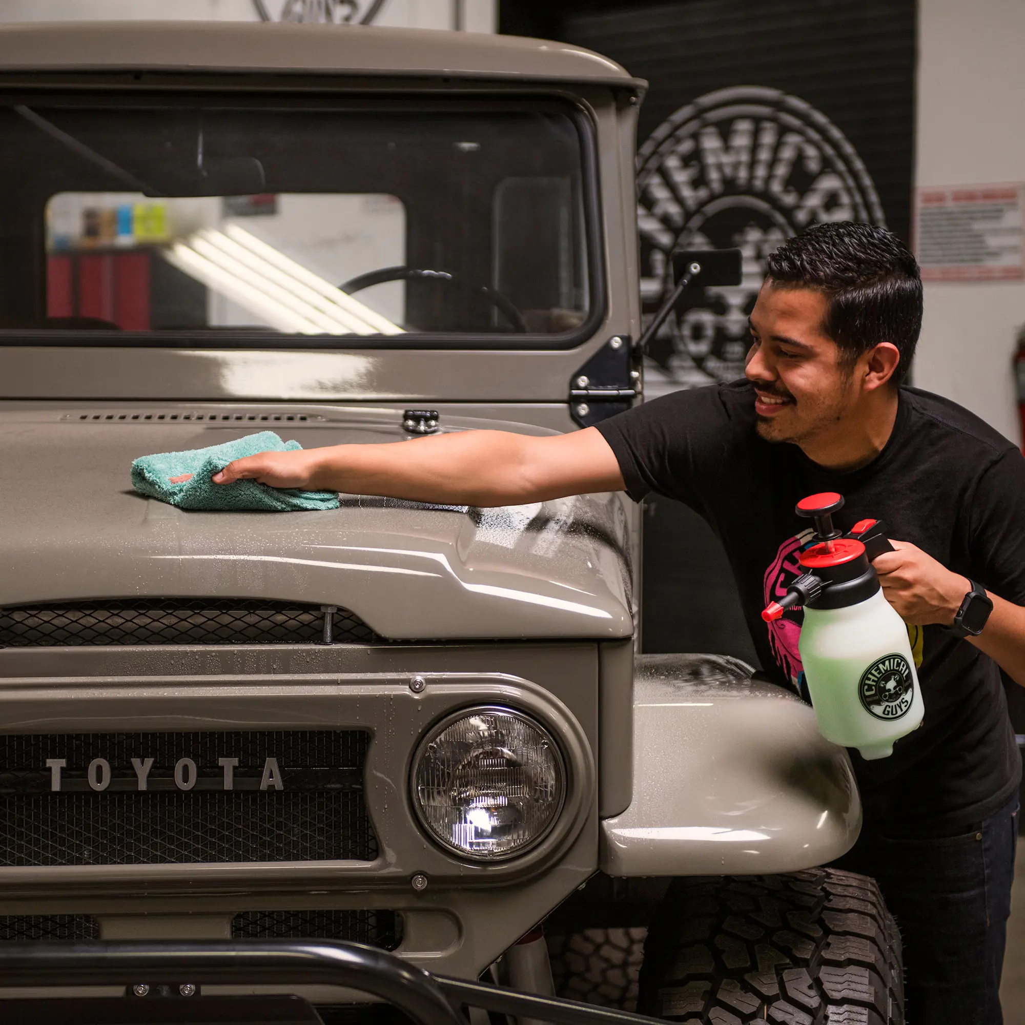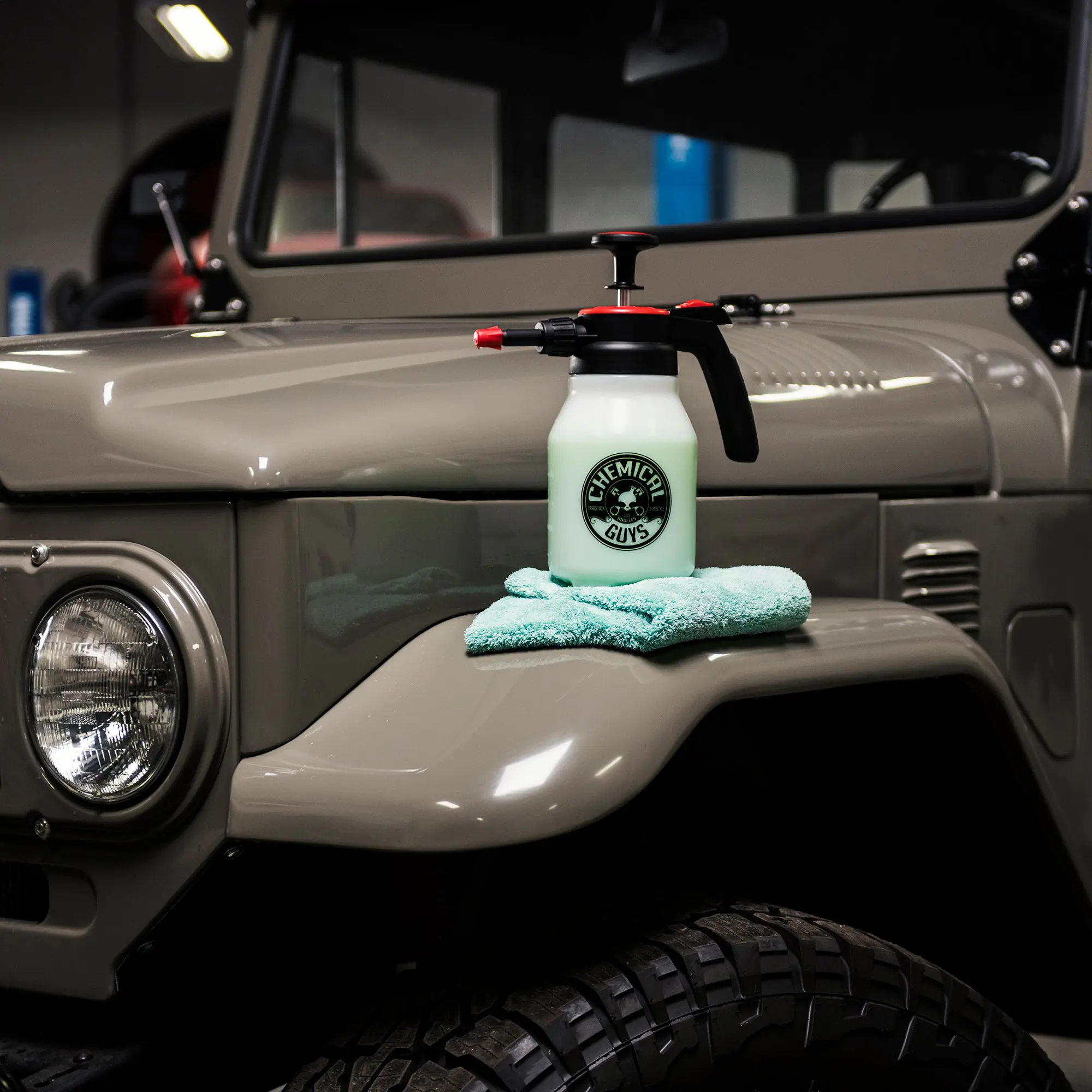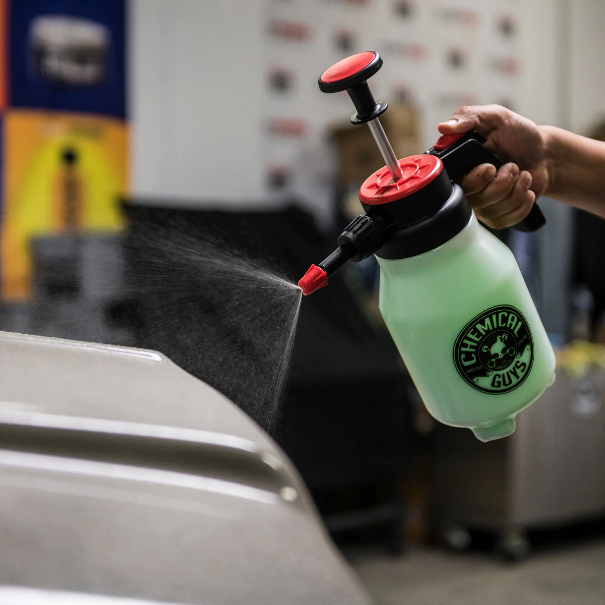 Use the pre-labeled measuring marks on the heavy-duty 50oz UV-resistant bottle to dilute your favorite Chemical Guys detailing liquid. Shoot an endless supply of waterless wash, detail spray, glass cleaner,