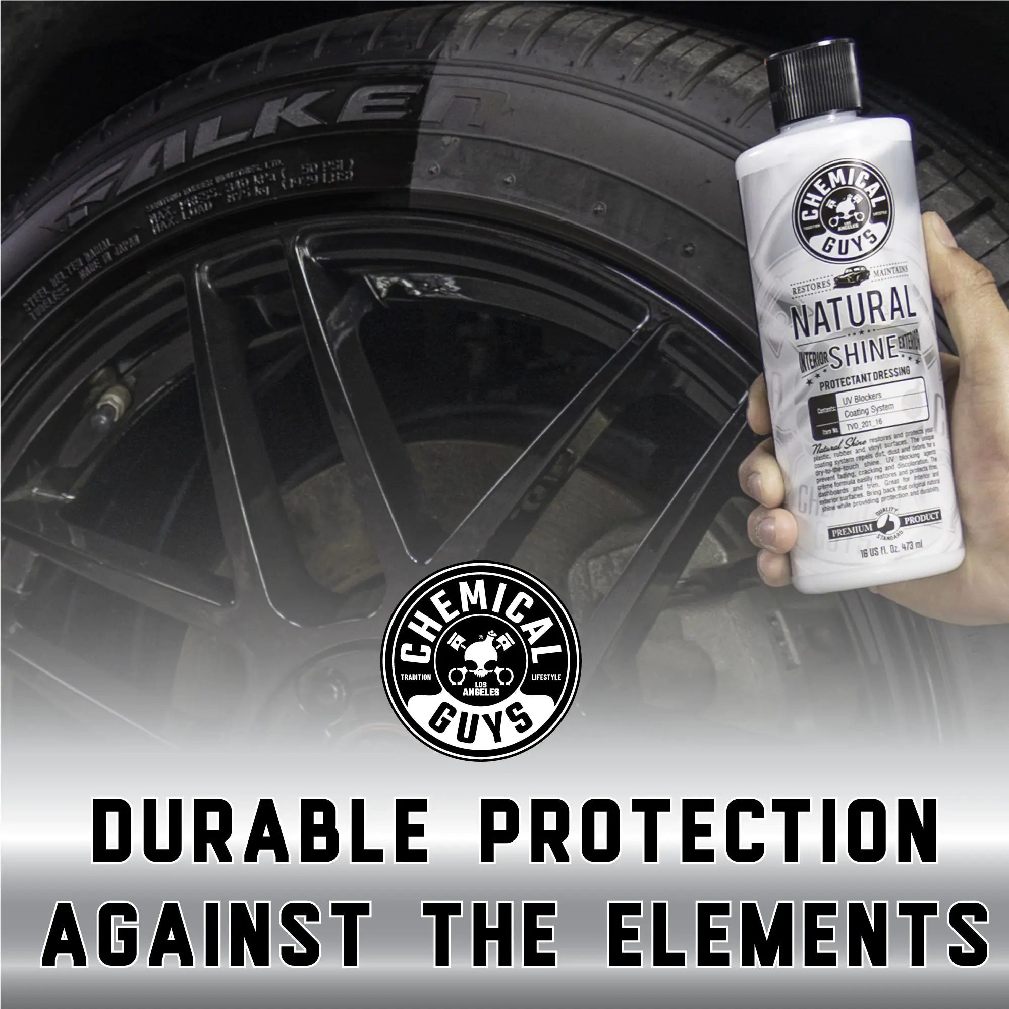 Natural Shine is formulated using synthetic polymer coating technology that bonds with the surface to restore an original appearance on tires, dashboards, trim pieces, and more. The advanced synthetic polymer coating contains UV blockers that ensure your trim is protected against cracking, fading, discoloration, and staining that can occur over time.