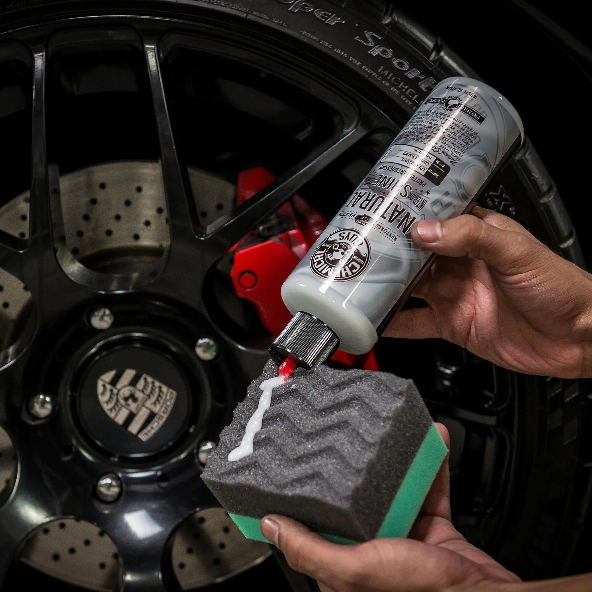 After cleaning your tires, dashboards, vinyl, and plastic trim, it’s important to apply a dressing to protect the surfaces and add a bit of shine. Natural Shine nourishes and restores the surfaces to their original luster. Use it on tires, dashboards, and trim pieces to create a natural, dry-to-the-touch appearance that avoids the look of greasy and overly glossy products.