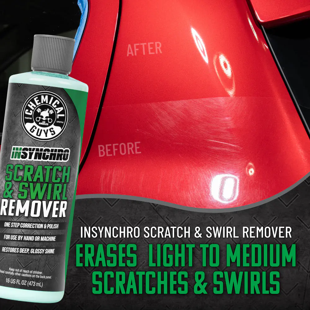 InSynchro Scratch & Swirl Remover is the core of this kit, designed to correct light to medium scratches, swirls, water spots, and other paint defects in one step. Its advanced formula blends the cutting strength of a compound with the refining ability of a polish to help restore clarity, gloss, and depth.