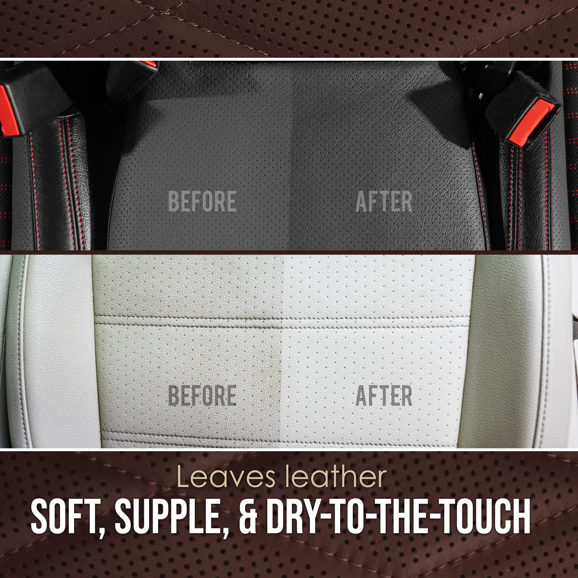 This kit contains just what you need to clean, condition, and protect perforated and ventilated, natural, faux, and vegan leather -