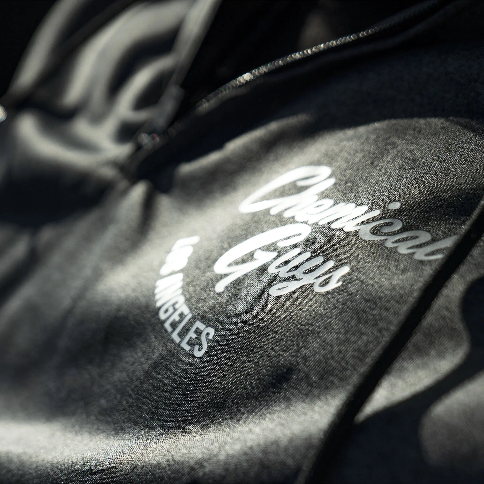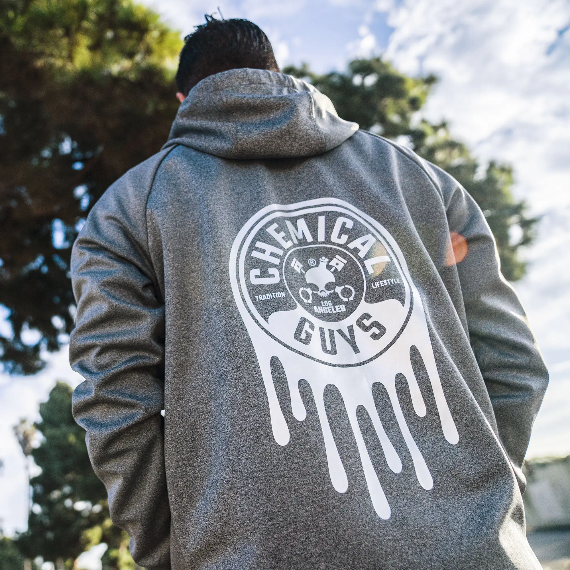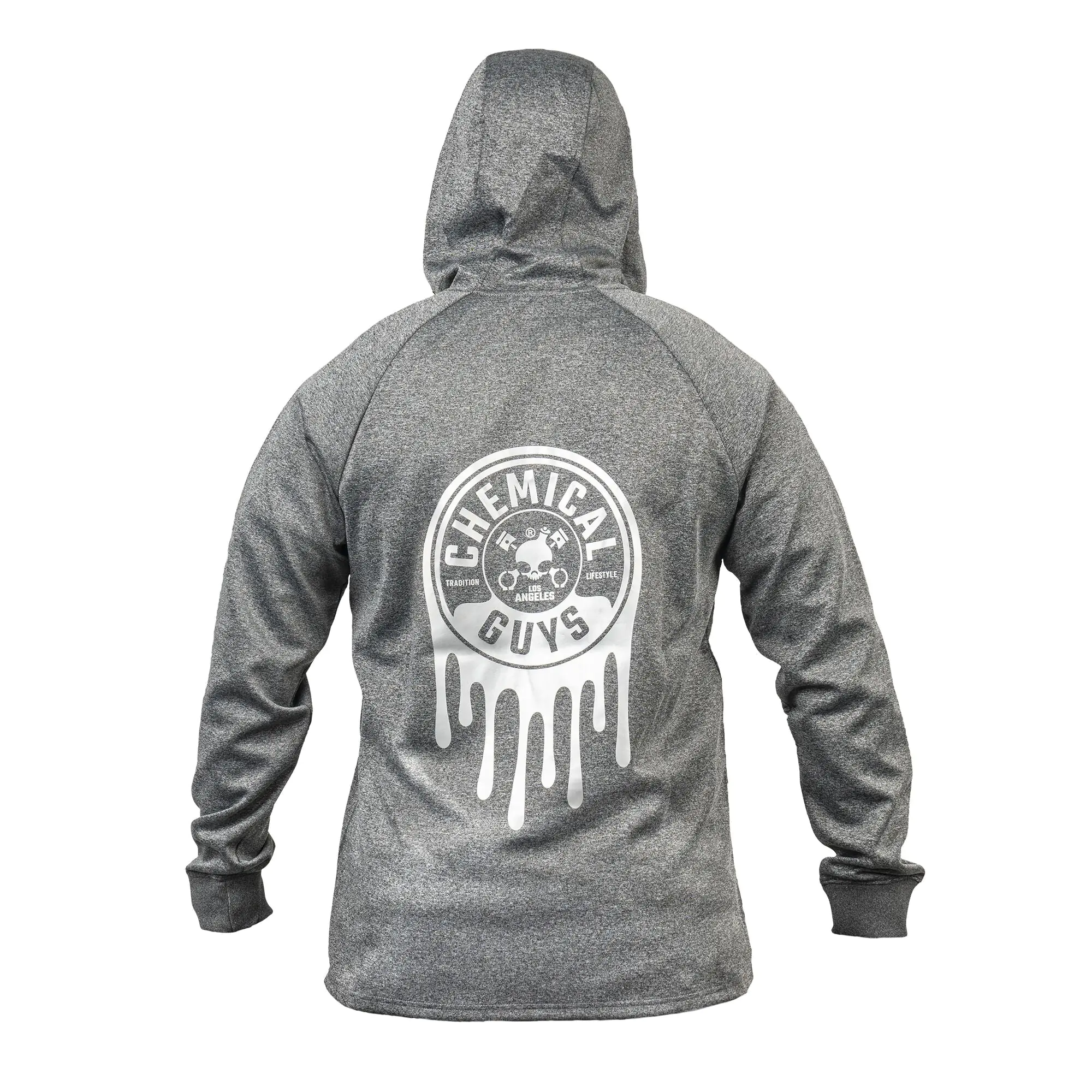 - Large metallic dripping Chemical Guys logo on back