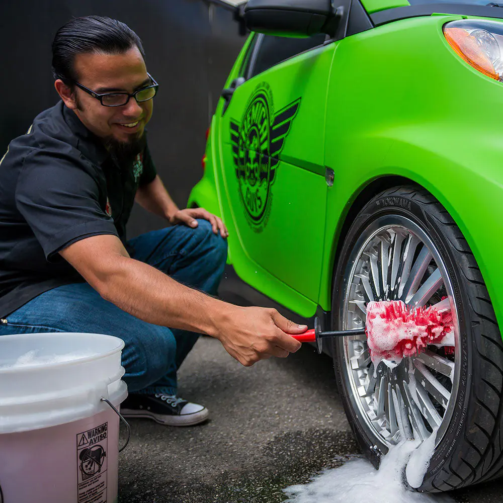 The Red Rocket Brush is a gentle, flexible brush that can bend to deep-clean all those hard-to-reach areas around your car. With two different sizes and a unique bendable spine, there is no place for dirt to hide.