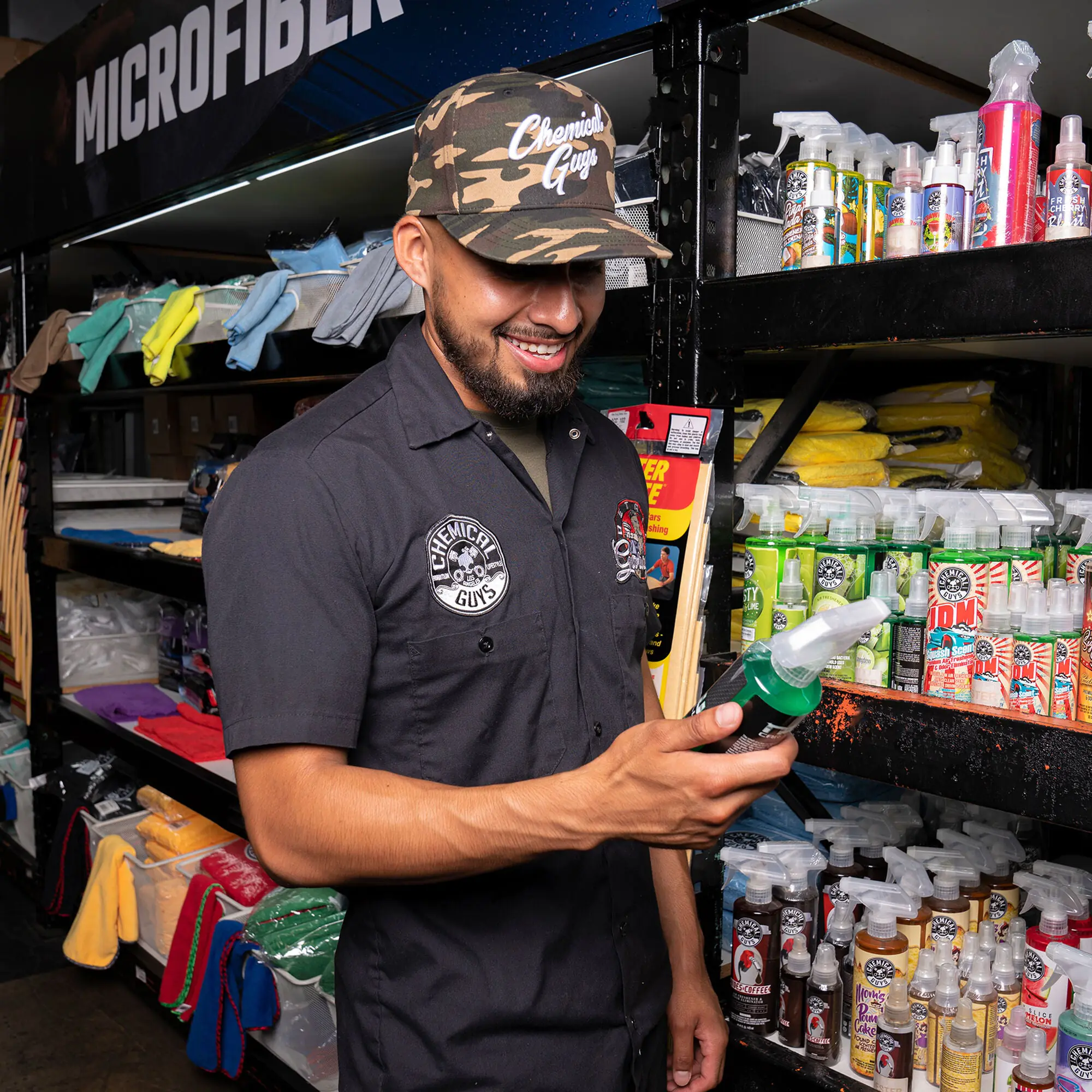 Detailing in the hot sun is no simple task. It’s easy to get overheated, burnt, and worn out before you know it. With the Snap-It-Back Camo Script Hat from Chemical Guys, you can work in comfort and detail in style no matter the weather! With it’s 100% cotton design and ventilated breathability, the Snap-It-Back Camo Script Hat will help keep you cool on even the hottest summer days! Whether you’re wearing it frontwards to shield your eyes from the sun, or backwards to keep your neck from burning, you’ll be cool and comfortable with the Snap-It-Back Camo Script Hat!