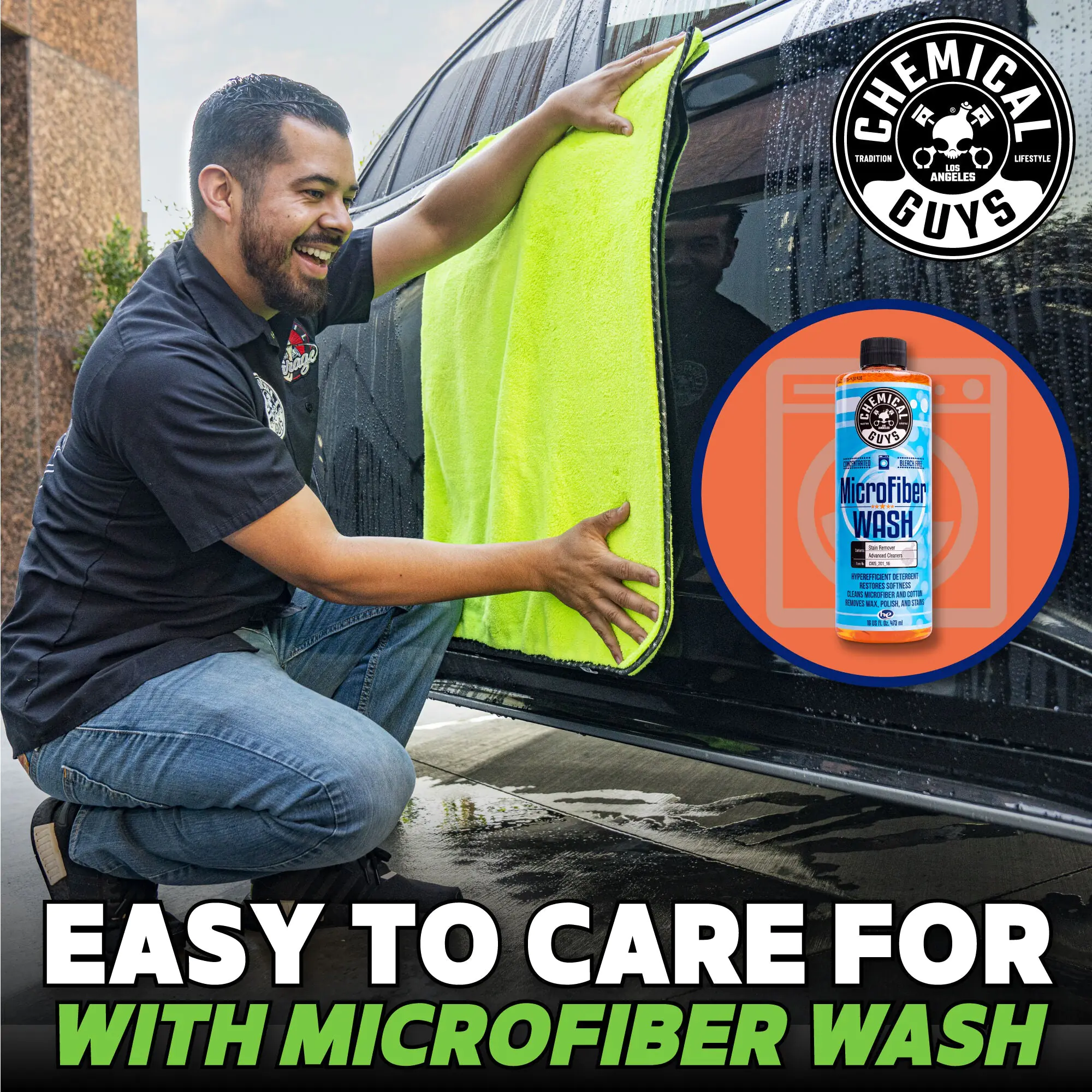 - Quickly wipes up remaining moisture on exteriors