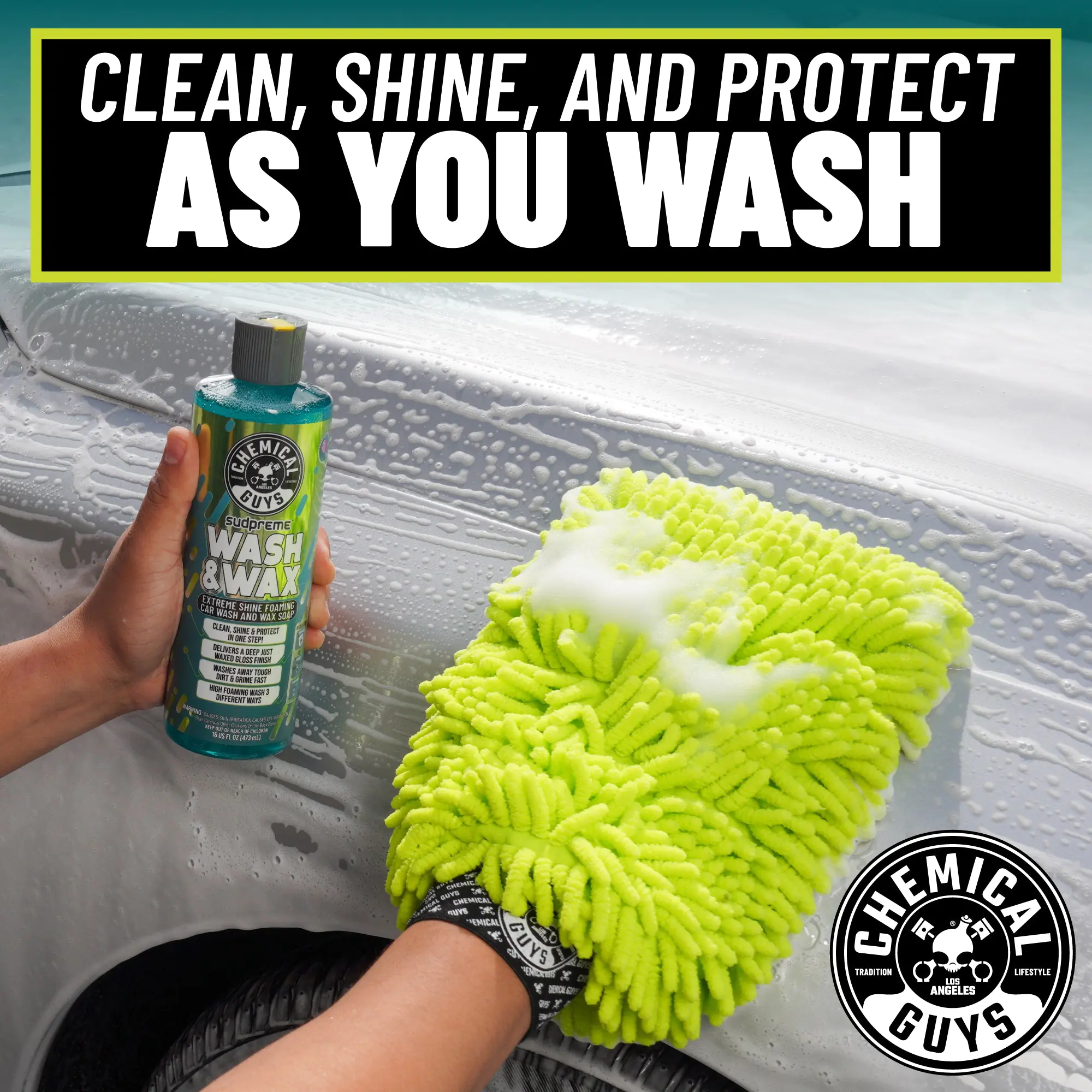 Looking for a high-quality wash and wax soap that can give your car a deep, just-waxed shine while protecting it from the elements? Look no further than Sudpreme! Our premium formula is designed to clean, shine, and protect your car all in one step, making it the ultimate wash and wax solution. The natural carnauba wax inside of our advanced formula provides a deep, lustrous shine that enhances your car’s color and creates a wet, reflective look that brings out the richness of your car’s color. Shine bright like a freshly waxed ride with Chemical Guys Sudpreme Wash and Wax!