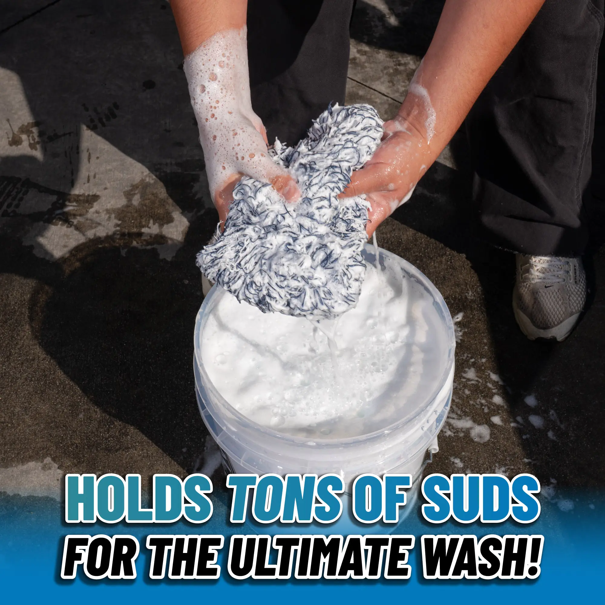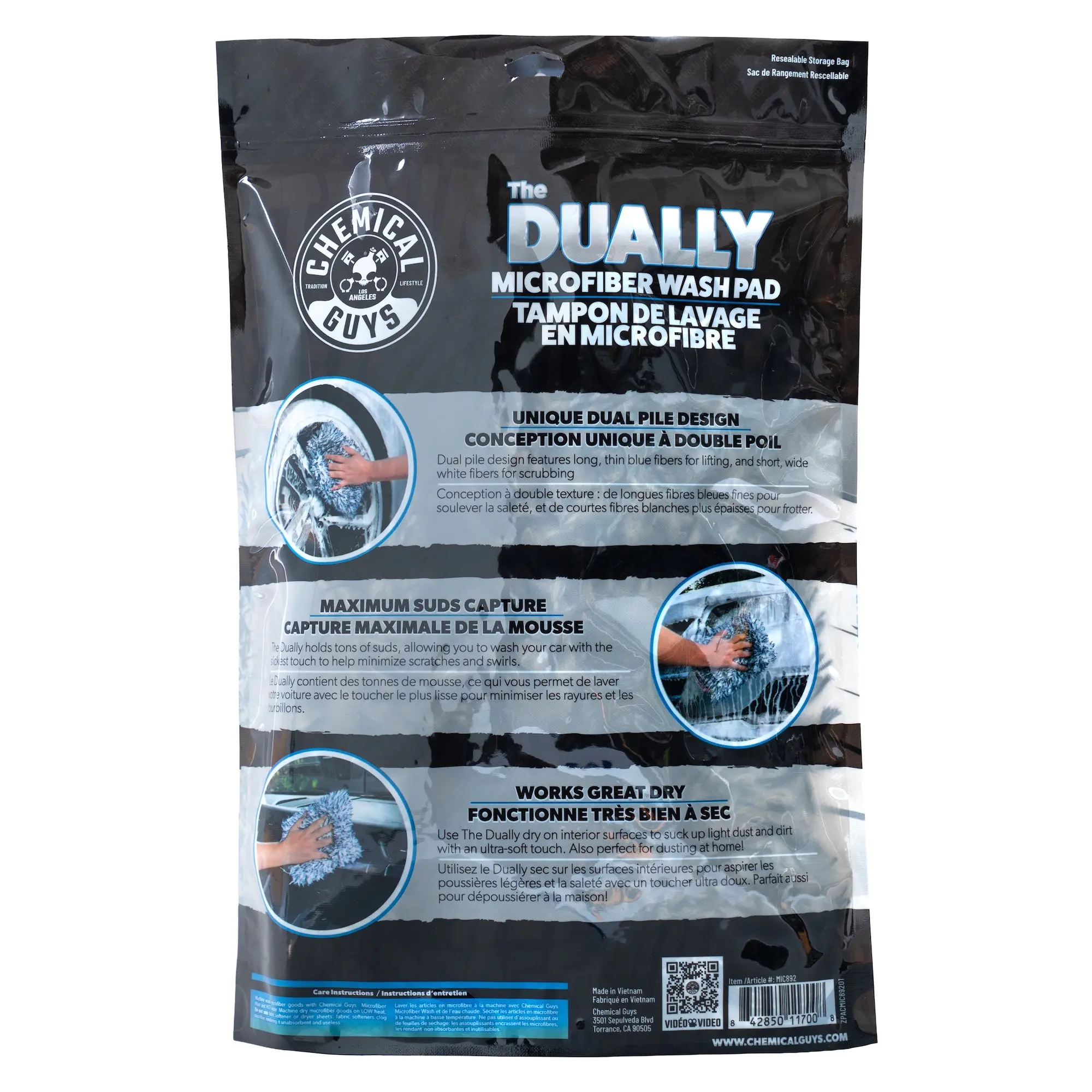 The Dually’s super‑absorbent, dual‑pile design lets it hold tons of suds to easily break down & wash away dirt & debris.