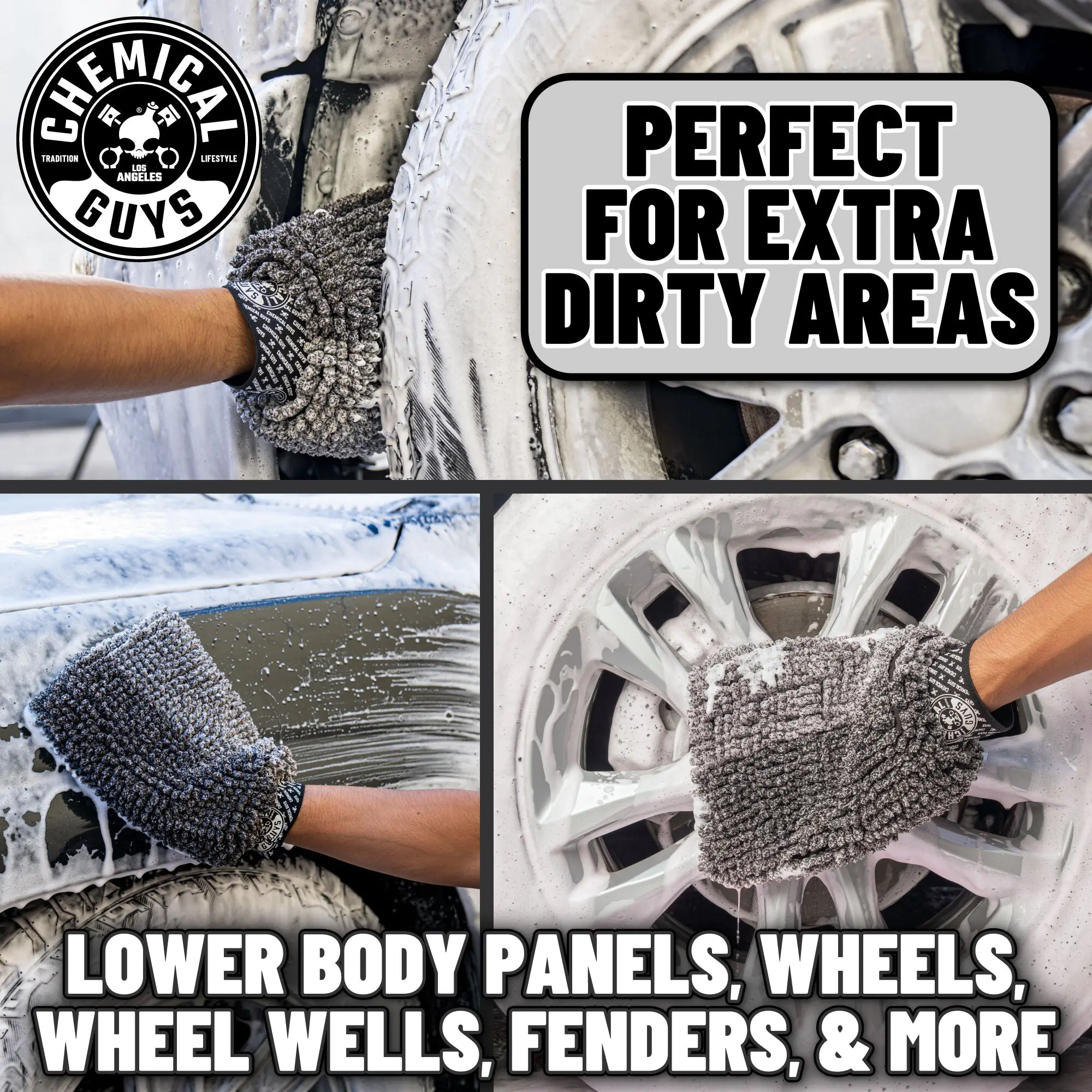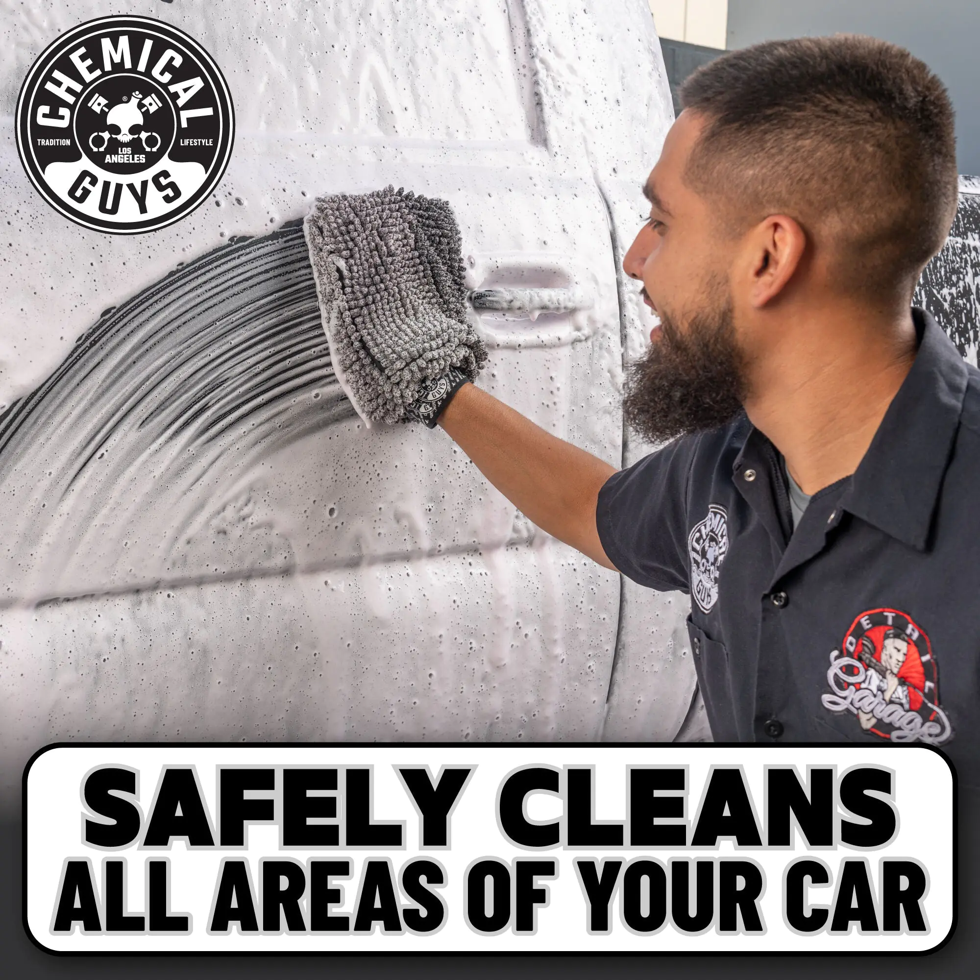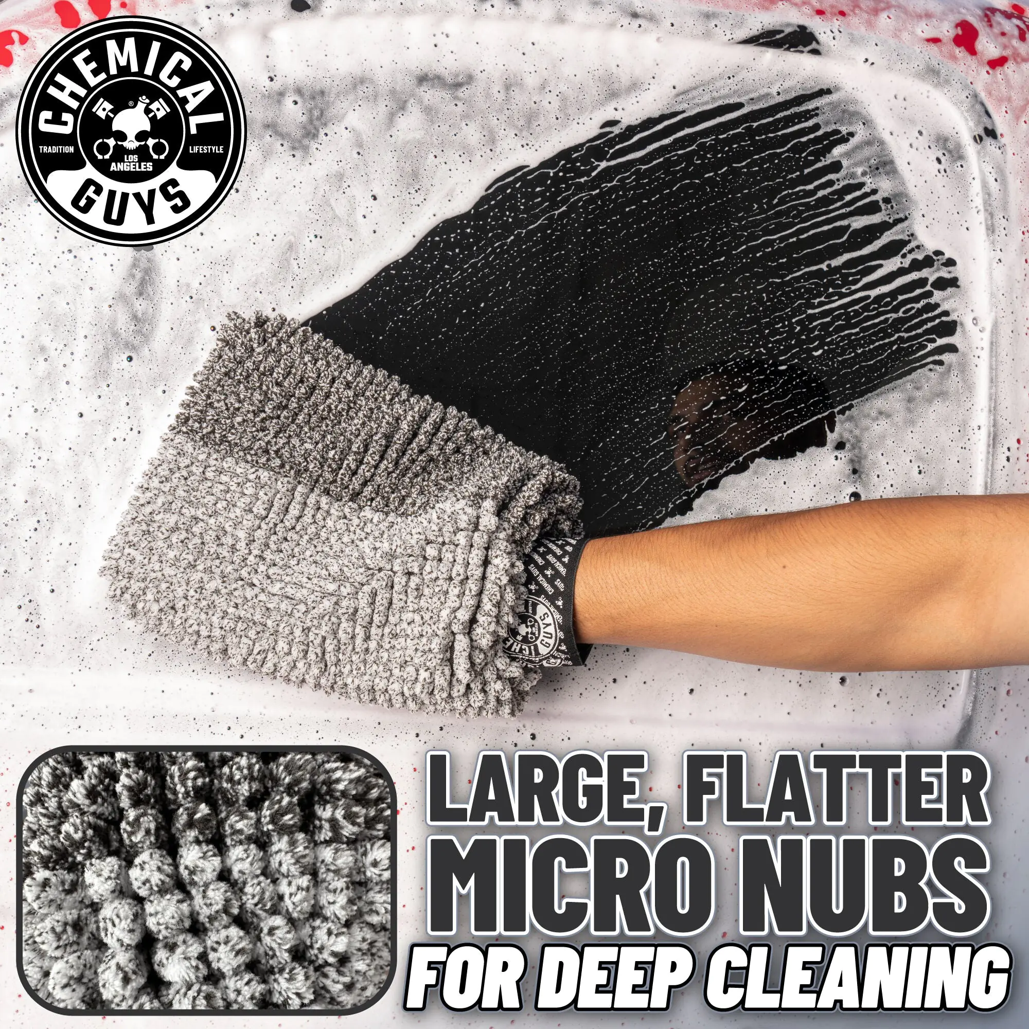 The PileDriver detailing mitt features unique Micro Nubs designed to hold extra suds while gently lifting and removing heavy dirt and grime from surfaces.