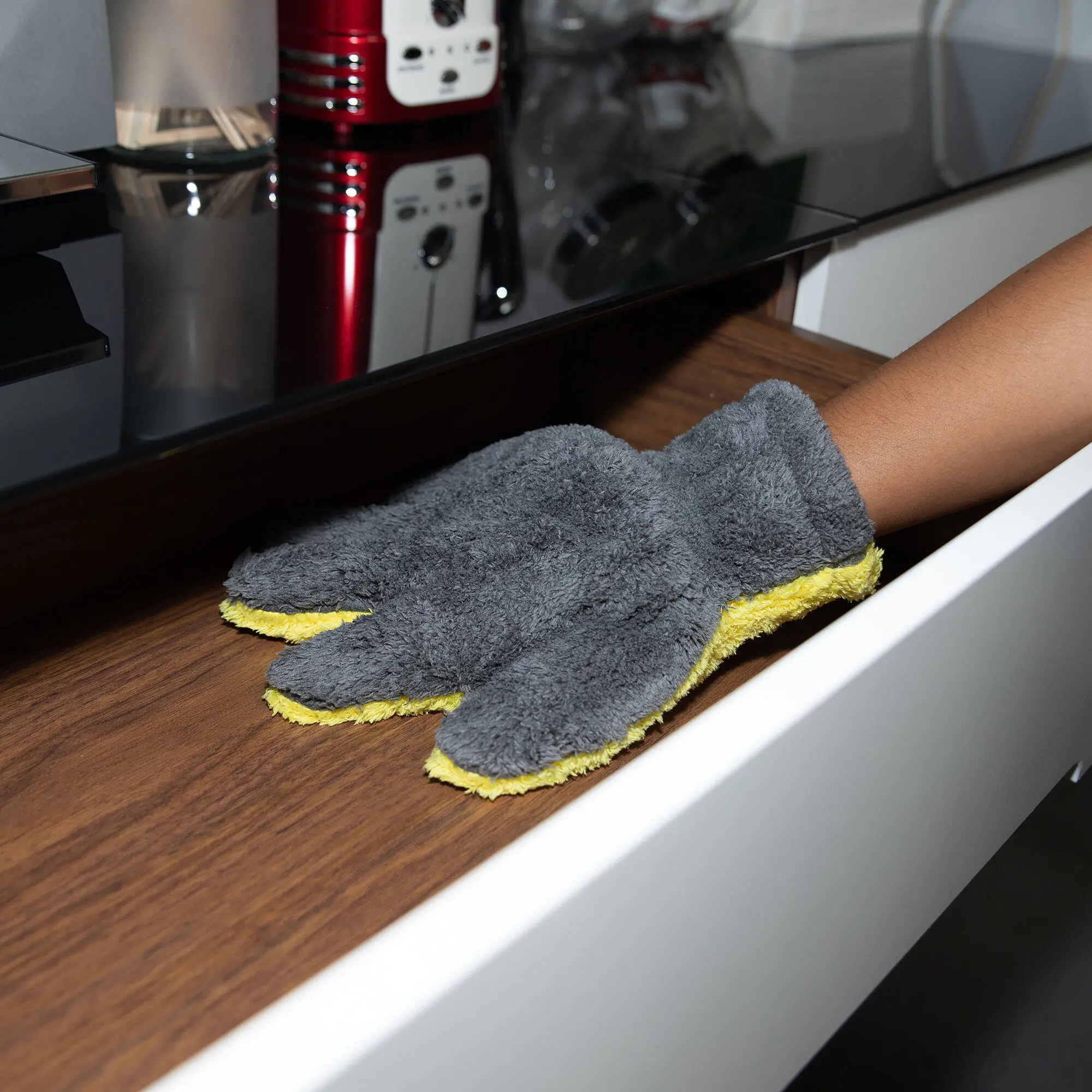- Wear as a glove to get into any tight spaces without trying to manage a towel or large mitt