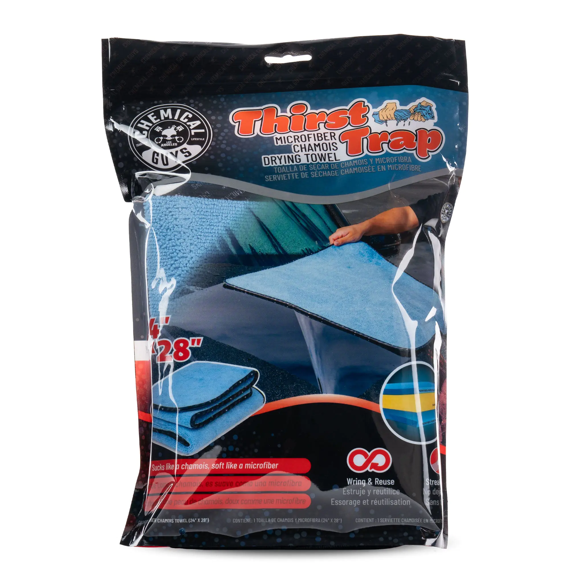 Thirst Trap™ Microfiber Chamois Towel combines the ultra-absorbency of a chamois, wrapped in the soft touch of microfiber for an effective, gentle dry. Named for its ability to trap and hold water, it features super absorbency and a quick-wring design, making it durable and reusable for effortless car care.