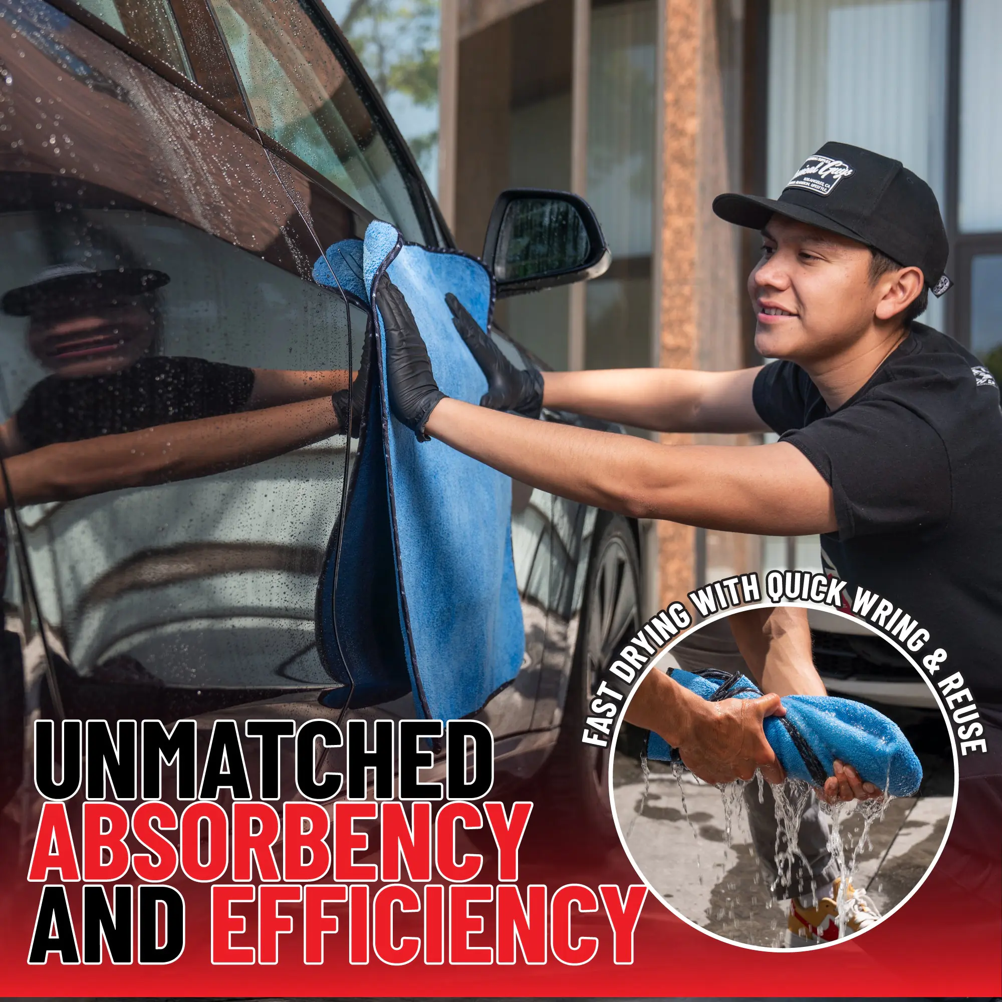 People love shammy towels for their quick drying and wring-and-reuse capabilities, but they often harden and can scratch paint while holding onto dirt and debris. The Thirst Trap™ changes the game by combining a chamois center with a microfiber exterior. Microfiber is highly absorbent, gentle, and effective, making it the perfect partner for the chamois core. This combination provides the best of both worlds: fast drying, quick wringing, and the ability to wash and reuse without the drawbacks of traditional chamois towels. The Thirst Trap™ sets a new standard in car care, delivering unmatched efficiency and convenience.