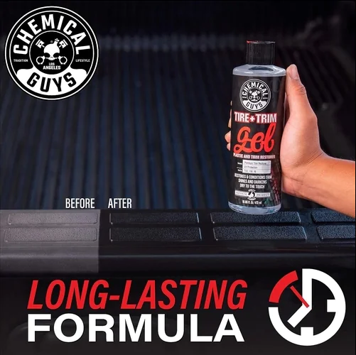 Use Tire + Trim on faded bumpers, fender flares, door trim, weatherstripping, mirrors, window moldings, windshield cowls, rocker panels, tires, and more. The formula’s special UV blockers reject harmful solar rays that can damage plastic and rubber, keeping your trim and tires blacker for longer. Tire + Trim is also formulated with special waterproofing agents to help it last through multiple washes.