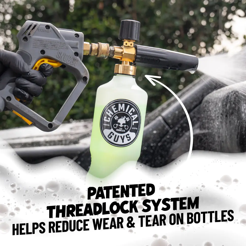 - Among our foam cannons, the TORQ MaxFoam 8 boasts a thread-lock system to prevent wear and tear on bottles.