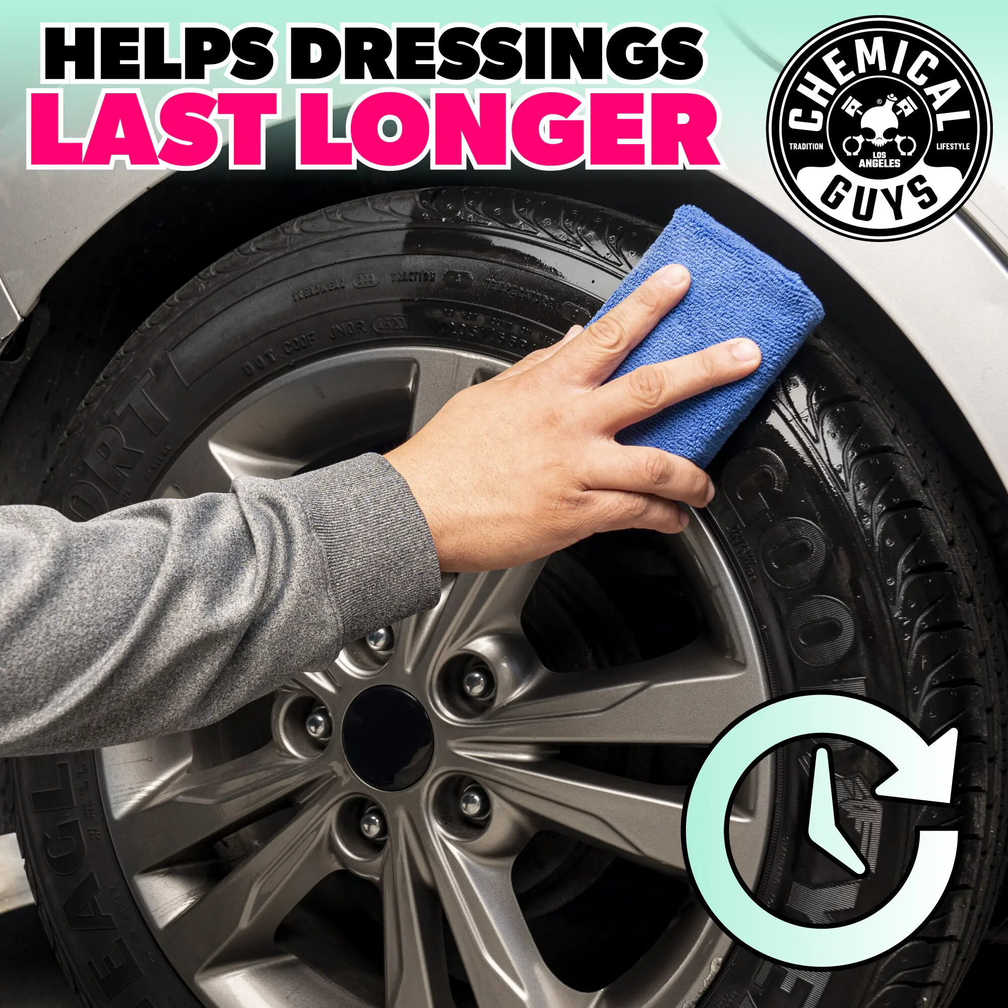 - Helps tire shine & dressings last longer