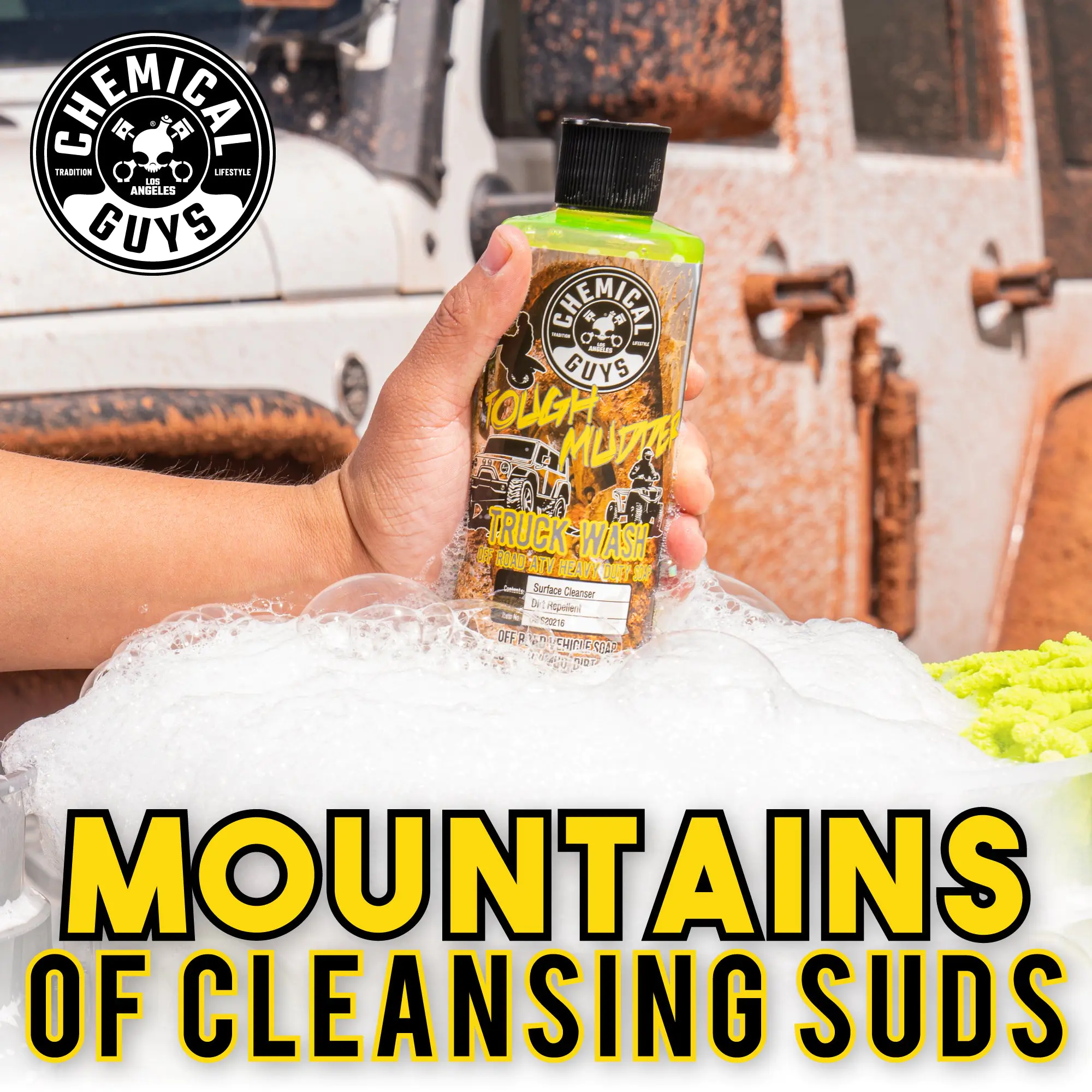 - Among our soaps, Tough Mudder is best for off-road vehicles and cleans heavy mud, grime, dirt, and sand.
