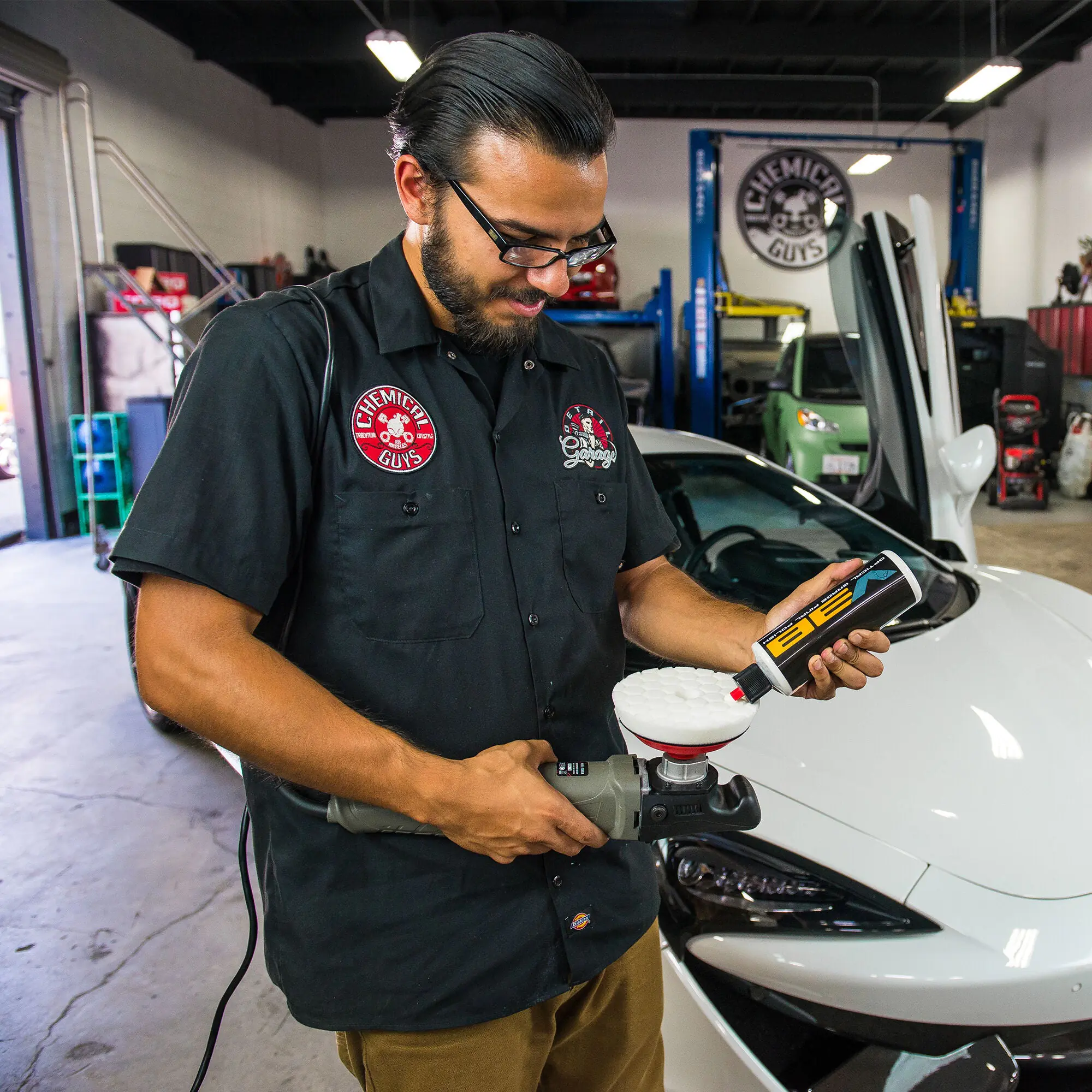 When only perfection will do, detailers reach for V38 Final Polish to refine depth, luster, and gloss on a vehicle. Use V38 on any DA or rotary polisher to remove light scuffs, scratches, or any compounding marks or holograms from prior polishing steps. V38 makes short work of light marring and refines polished surfaces with supreme optical clarity, giving you a body shop look.