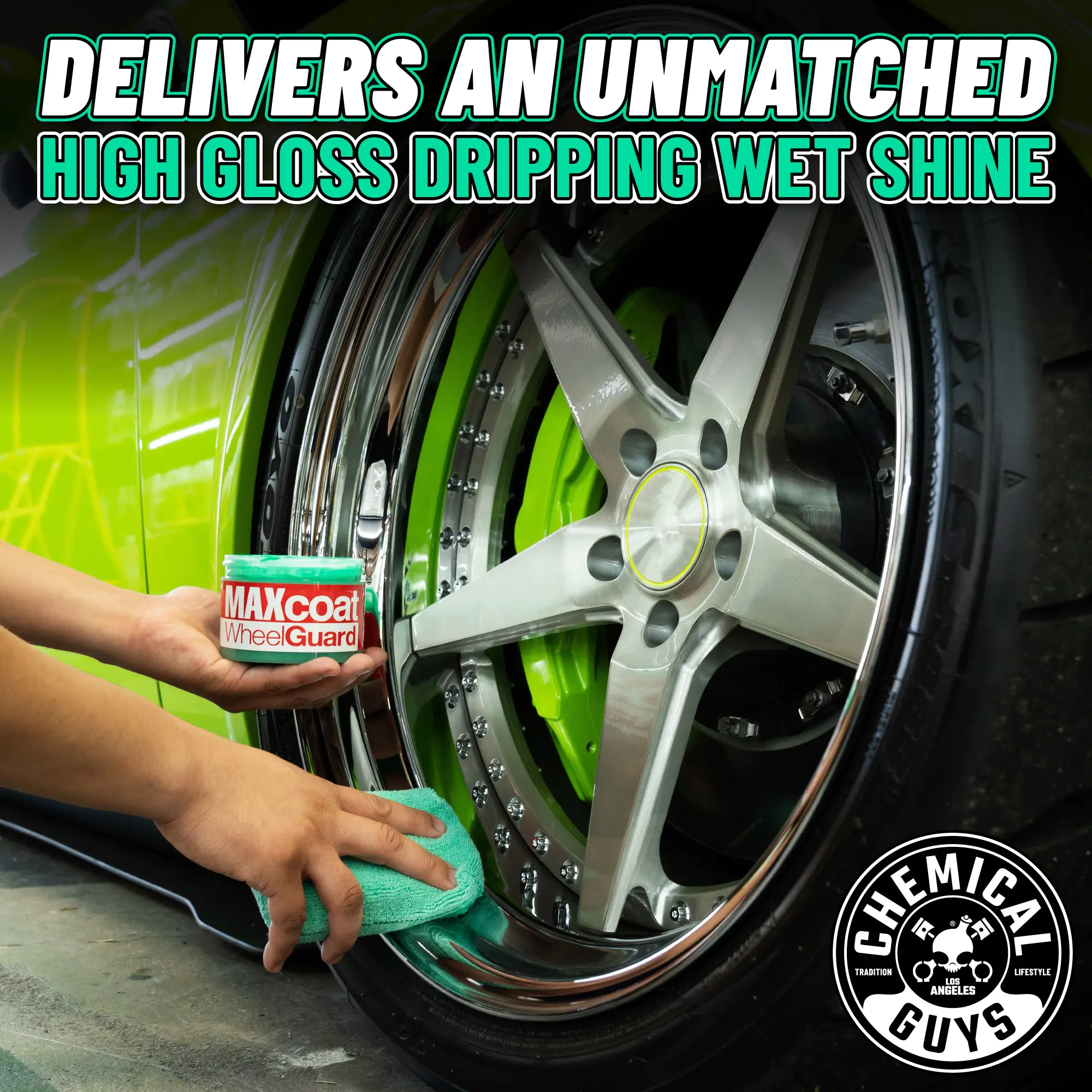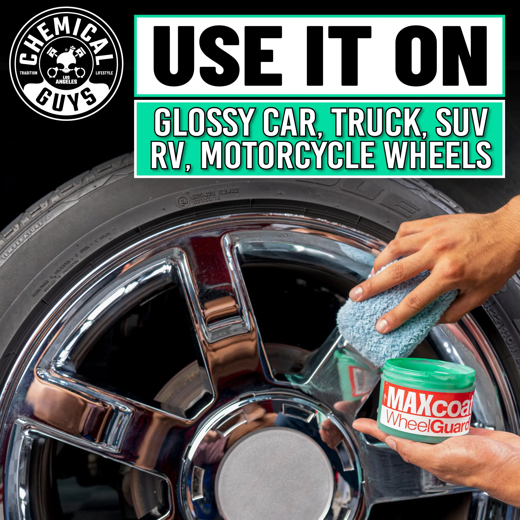 Max Coat is blended with gloss agents to enhance shine and a bright clean look on wheels and rims. The durable wheel coating lasts through dozens of washes and high heat braking conditions, and provides up to 8 full months of protection with just one application. Use Wheel Guard Max Coat to protect any factory OEM or custom wheel from the worst elements, high heat, brake dust, and road grime.