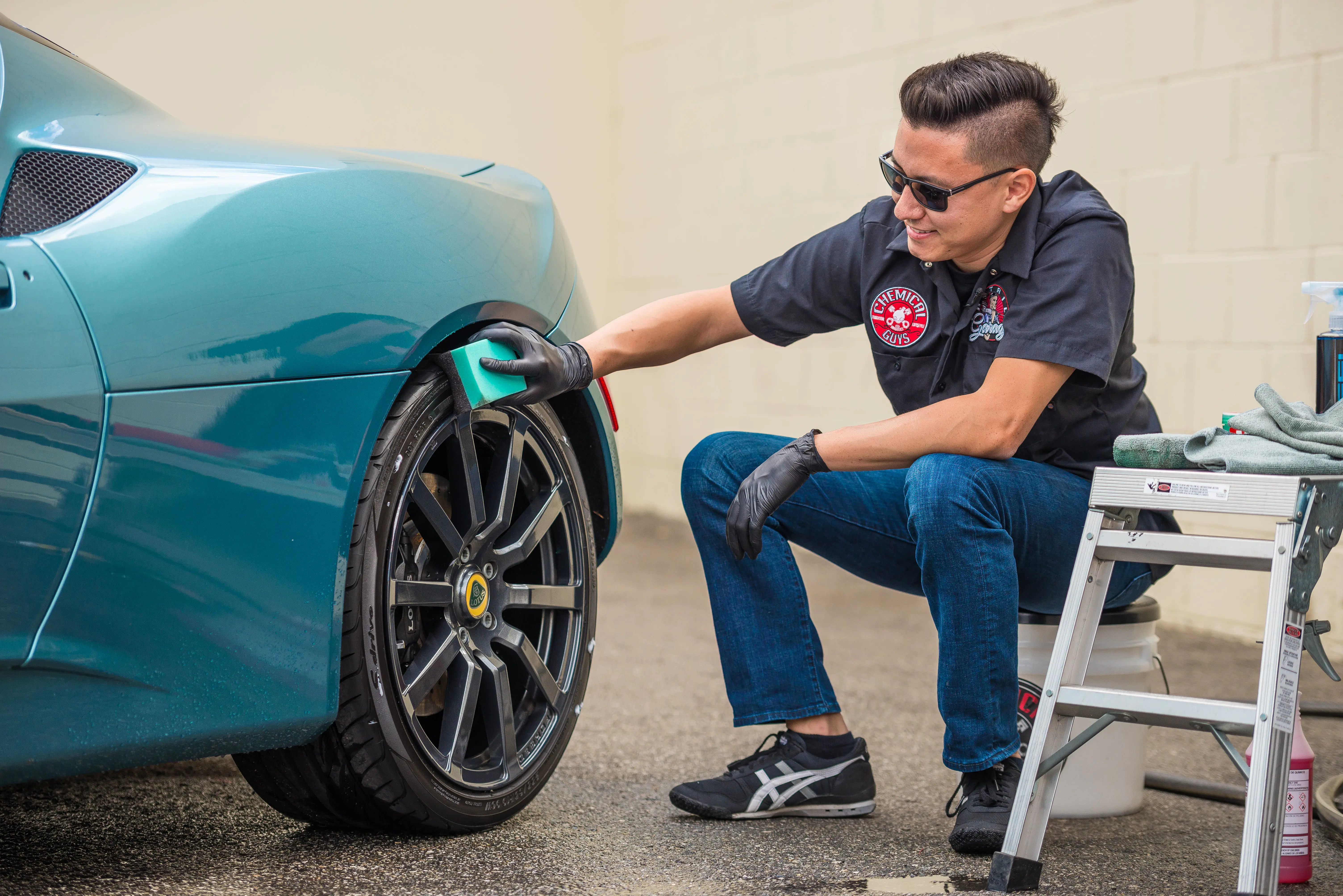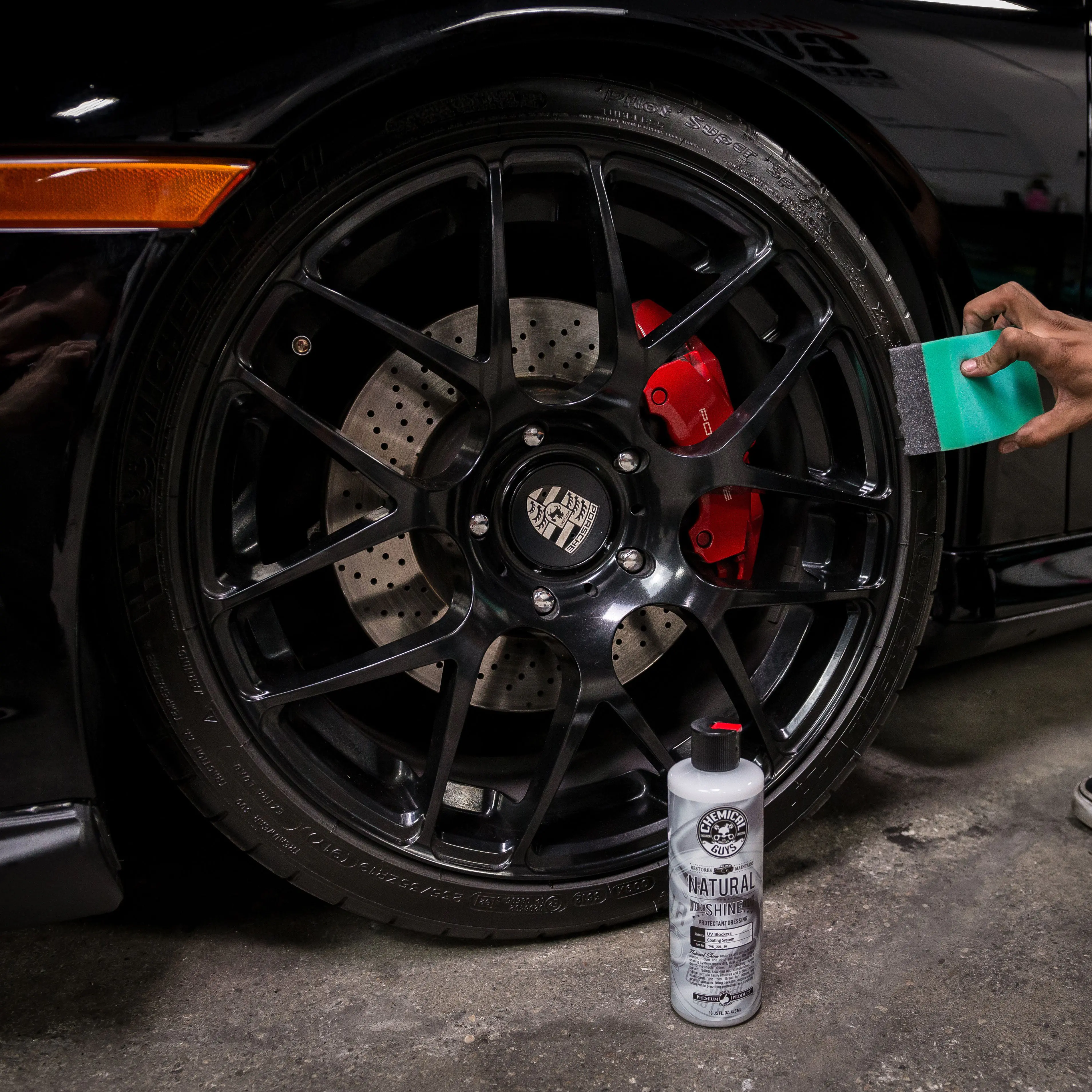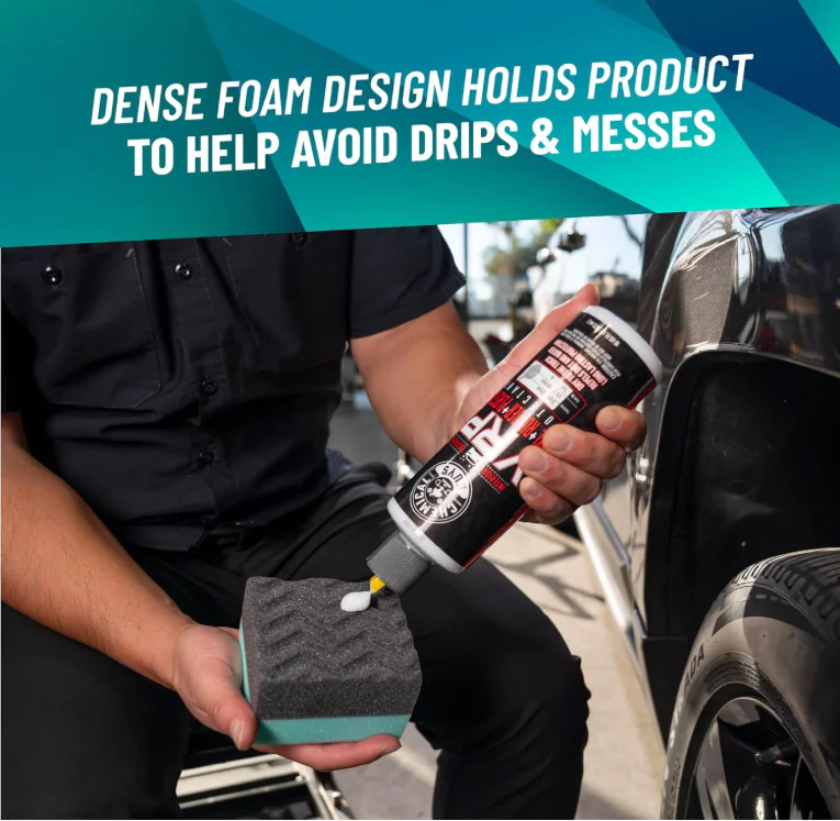 Use the Wonder Wave to spread a thin, even layer of your favorite Chemical Guys tire shine or dressing on rubber tires, plastic trim, vinyl door panels, and leather upholstery. The dense foam holds tight to spray dressings and creams, preventing messy drips from running over the surface while you work.